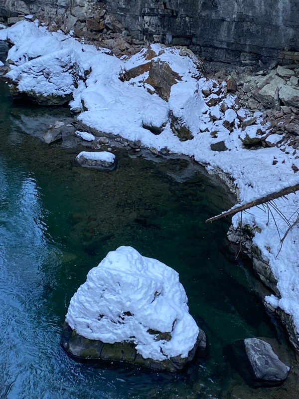 Am vierten Tag, wiederum bei strahlendem Sonnenschein, konnte ich Dietmar nur mit Mühe von der als „rasant“ beschriebenen Rodelbahnfahrt abhalten. Sie führt von der auf 1708m hoch gelegenen Bergstation am Hochgrat in einem grossen Bogen zur Talstation auf 856 m. Es fiel ihm nicht leicht, sein ambitioniertes Vorhaben aufzugeben. Wir machten uns auf den Weg nach Obersdorf und wanderten durch die Breitachklamm, nicht ohne zuvor Spixes für meine noch verblieben Winterschuhe zu kaufen. Damit marschierte ich sicher durch eine bezaubernde Eislandschaft und kam mir vor, wie die Eiskönigin.