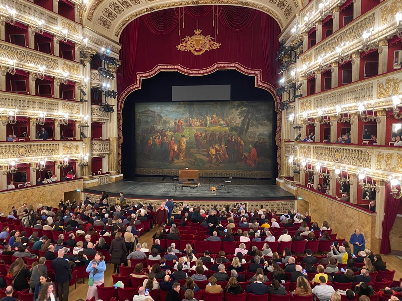 1737 eröffnet ist es das älteste Opernhaus der Welt, Jahrzehnte vor der Scala in Mailand oder dem Teatro la Fenice in Venedig. Wir erlebten die Aufführung von Scarlattis Stabat Mater.
